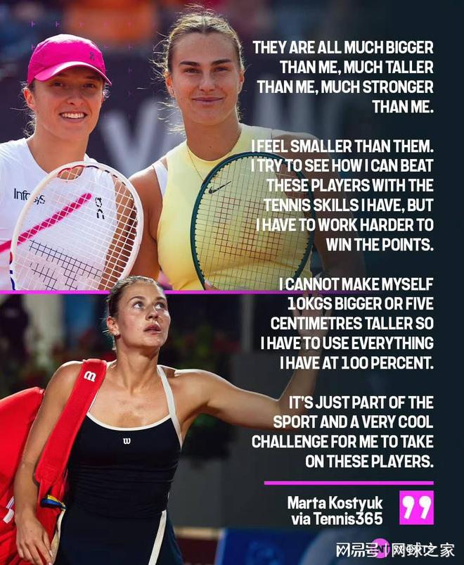 近日,乌克兰猛女科斯秋克的言论再次引发网坛舆论风暴。原因在于,在接受采访时,当她谈到自己与萨巴伦卡、斯瓦泰克之间的差距时,这位凶猛的乌克兰女子竟然将其提升到了生理差异的程度。他甚至认为有些人通过服用药物来提高睾丸激素水平,从而统治网球世界。 “我们都有自己的生理结构。有些人的睾酮水平较高,有些人的睾酮水平较低。这是自然的吗?但应该有帮助,但我感觉自己比他们小。”科斯特尤克的言论引起了网坛的爆炸!她所指的“她们”是当今女子网坛的顶尖选手——世界排名第一的松恩卡和波兰名将斯瓦泰克。多家媒体迅速做出反应。他们评价科斯特尤克的话为:“这是自辛吉斯两次引发巨大争议以来,女子网坛最大胆的言论。”十几年前,当她说“毛瑞斯莫就像个男人”!“但话还没说完。谈话中,科斯特尤克公开分析了与顶级选手交手的经历。“对阵斯瓦泰克,我完全没有准备。我上次和他交手已经是一年多前了,他非常强大。”科斯特尤克说道,“对阵宋亨卡,我知道这将是一场艰苦的战斗。我有自己的技术素质,但归根结底,他们都比我更大、更高。当被问及如何弥补这个物理空间时,他无奈地回答道:“嗨,我无法让自己增重10公斤或增高5厘米,所以我必须百分百利用我所拥有的一切。”值得一提的是,这篇采访最初发布时,有关睾丸激素水平的内容被隐瞒。但随着整个记录的泄露,科斯秋克关于“生理结构”的评论很快就忽略了公众的意见。最有疑问的 科斯秋克声明的一个方面o网友是对他身高的描述。根据官方数据,科斯特尤克身高1.75米,而斯瓦泰克身高1.76米。两人的身高相差只有1厘米。萨巴伦卡身高1.82米,实际上比科斯特尤克高了7厘米,但这种差距在女子网坛并不罕见。此外,更有趣的是,有网友举出例子,称刚刚在武汉公开赛上击败斯瓦泰克的保利尼,官方身高只有1.63米。这一事实被不少网友用来反驳科斯秋克的“身高论”。有网友表示,“事实上,在WTA巡回赛上,不同身高的球员都有成功的先例。”在目前的世界前十名中,保利尼身高只有1.63米,但他仍然处于排名榜首,并且不久前才击败了斯瓦泰克。这个例子更加讽刺了!”此外,还有网友认为,科斯特尤克有意无意地成为斯瓦泰克兴奋剂事件的阴阳人。去年,斯瓦泰克因褪黑激素被污染而未能通过药物测试,而睾酮是体内激素水平受到兴奋剂污染的指标之一。不过,也有网友认为,科斯特尤克的话是对“萨巴伦卡像个男人”的讽刺。毕竟自从俄乌冲突以来,两国关系一直动荡不已,外界也非常关注松根卡的身体结构。像人一样的概念一直存在。因此,乌克兰人很可能想用这句话来嘲讽这位俄罗斯名将。除了身体上的差异之外,科斯特尤克还赞扬了顶级球员在心理上的好处,这在他对松根卡的观察中表现得尤为明显。 “他们的信心水平只是不同。我和宋恩卡打过几场势均力敌的比赛,你可以看到她在破发点上的表现。她不在乎。她毫不怀疑自己能够拯救他们。”科斯蒂描述了心理学l 细节差距:“他发球很好,正手压得很紧。一点也不。毫不犹豫。他是世界第一,他打了很多决赛,他有这样的信心。对我来说,毫无疑问地打球并不容易。”科斯秋克对阵前两名选手的战绩可能部分解释了他的沮丧和“愤怒”。据统计,斯瓦特克目前对科斯秋克保持着3胜0负的不败战绩,而萨巴伦卡则4场比赛全部获胜,没有给科斯秋克任何机会。一边倒的交锋记录反映出科斯特尤克在面对顶级选手时确实找不到有效的破门方式。他在采访中也承认了这一事实:“我试图思考如何以我所拥有的网球技术击败球员,但我必须更加努力才能赢得分数。我必须比他们跑得更多才能得分。”科斯特尤克的言论在社交媒体上持续发酵的同时,网友的态度也出现两极分化。一些网友支持Kostyuk的蜡烛并相信他只是在陈述职业运动的残酷事实——生理差异影响比赛表现。不过,更多批评者认为,他是在抹黑萨巴伦卡和斯瓦泰克“像男人”,这对女子网球是有害的。一位推特用户写道:“科斯特尤克试图用‘科学’来解释他的沮丧,但忽略了许多其他事实。网球更多的是技术和心态。” (来源:网球之家 作者:陆小天)